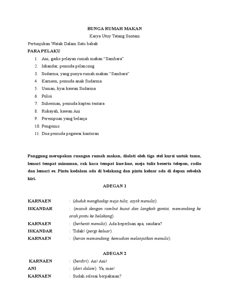 Naskah Bunga Rumah Makan Karya Utuy Tatang Pdf